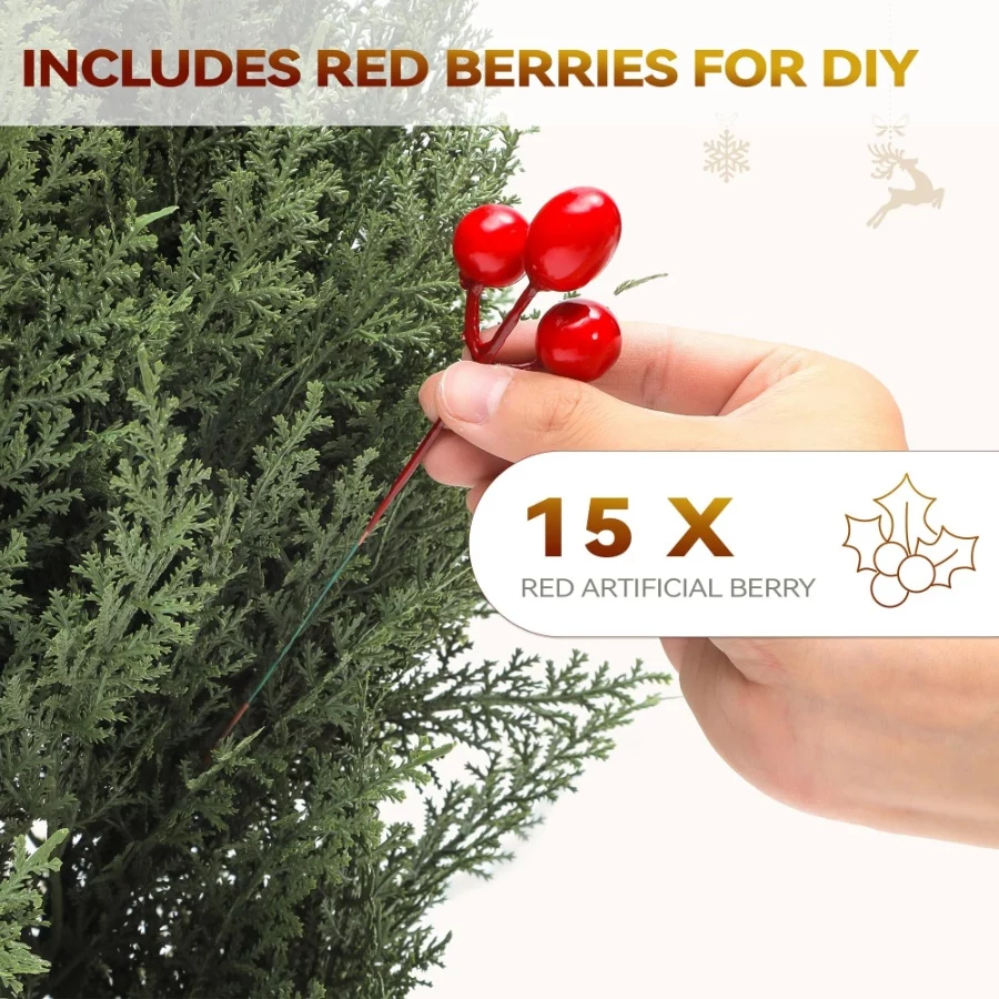 Each artificial cypress tree includes 15 red berries, providing an opportunity for DIY decoration. Add your personal flair to create a unique and festive look.