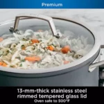 - Lid, handle, and nonstick coating are oven safe to 500°F