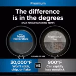 - NeverStick Technology created at a max temperature of 30,000°F for extreme durability