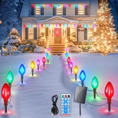 C9 Warm Christmas Pathway Lights Outdoor, 20 LED 24.2FT Waterproof Yard Walkway Driveway Decorations