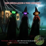 3 PCS Halloween Light Up Holding Hands Witches with Hats, Glowing Face Outdoor Decoration for Garden, Lawn & Haunted House.