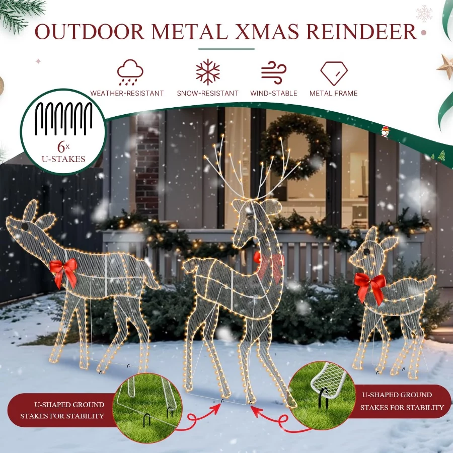 Festive DIY Look with Bow-Knot Accessories – Other Christmas reindeer decorations come plain. Ours include red bow-knot decorations for each deer, letting you DIY your own Christmas decor outdoor style. Perfect as large outdoor Christmas decorations, white reindeer Christmas decor, outdoor Christmas lighted decor, or yard Christmas figures.