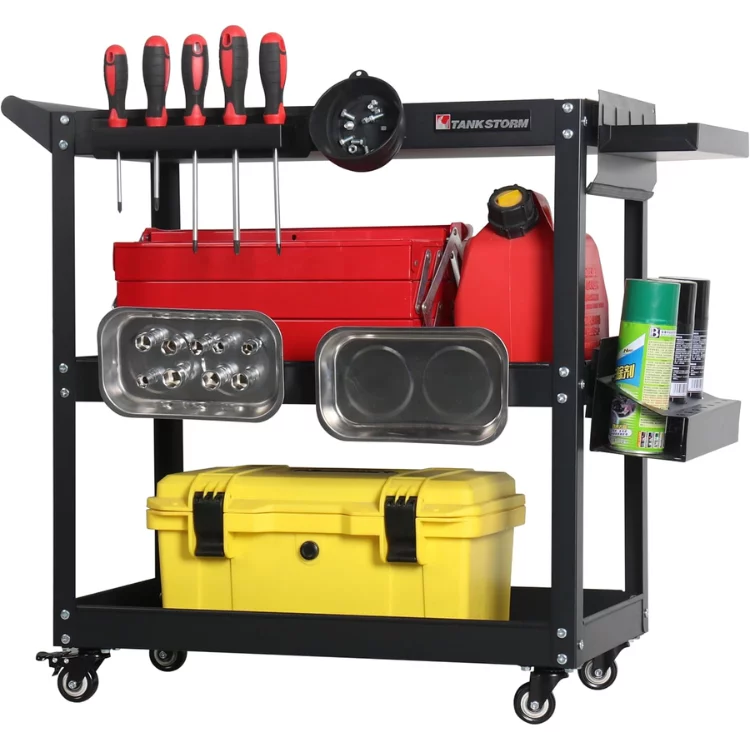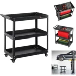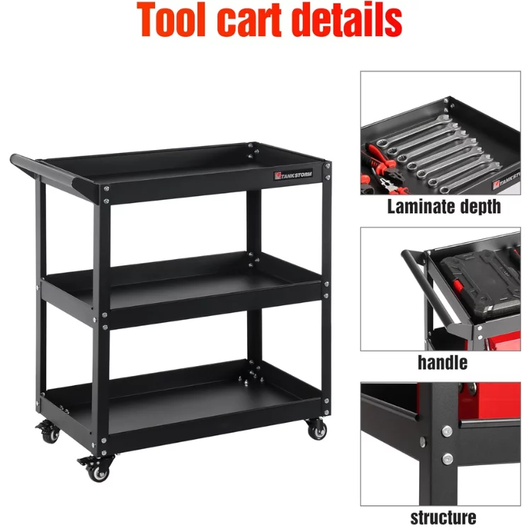 3 Tier Rolling Utility Tool Rolling Cart, Steel Service Carts for Garage, Auto Repair Shop, Kitchen