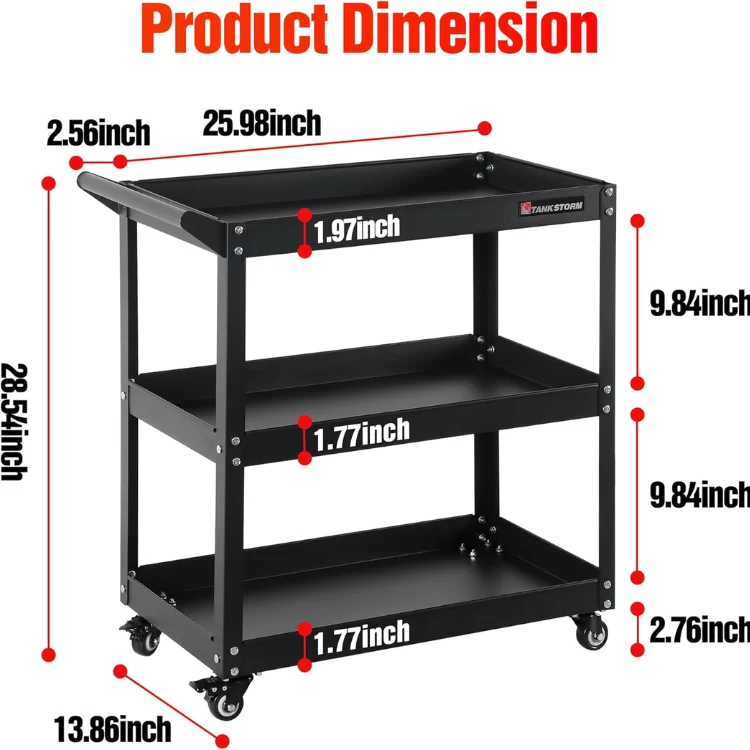 VERSATILE STORAGE – The Aukfa AK-HTS1-013 Utility Car features 3-tier design that offers ample space for organizing tools, office supplies, or household items, optimizing space in any environment.