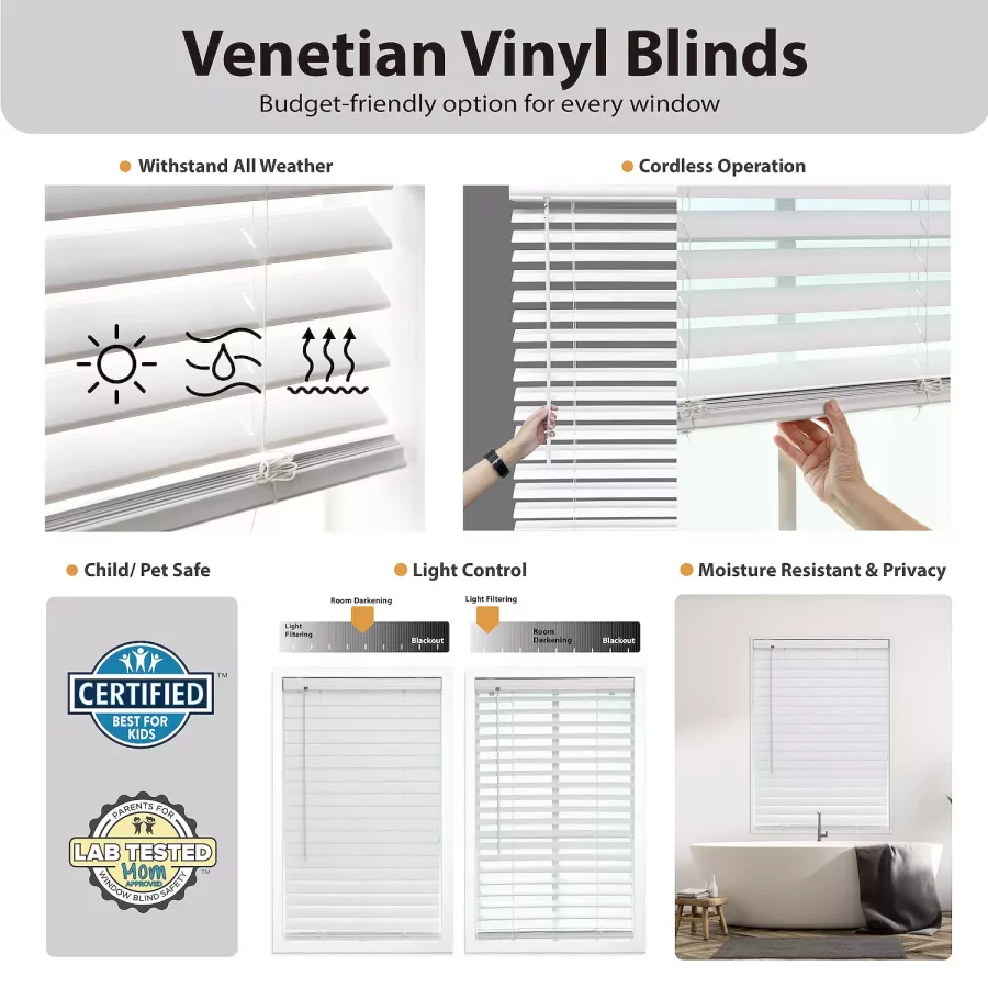 Cordless Room Darkening Vinyl Blinds – Sleek, Low-Maintenance Light Control