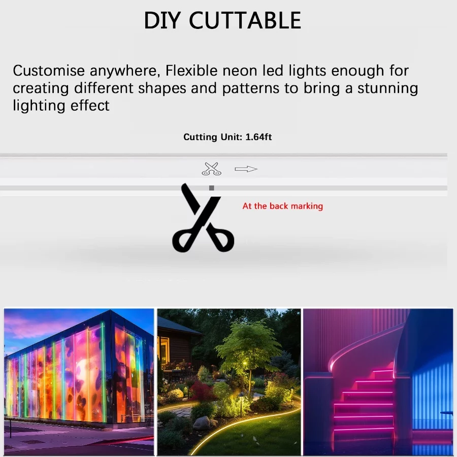 Flexible Neon Rope Light: Adlkirg outdoor neon rope lights the flexibility makes it easy to shape as needed. You can cut the rope lights every 1.64ft (0.5m) to suit your space. After cutting, adhesive or silicone glue (not included Take care to make it waterproof) is needed to secure the connection. Ideal for DIY projects, indoor or outdoor LED rope lights ensure easy and reliable customization of any design you envision.