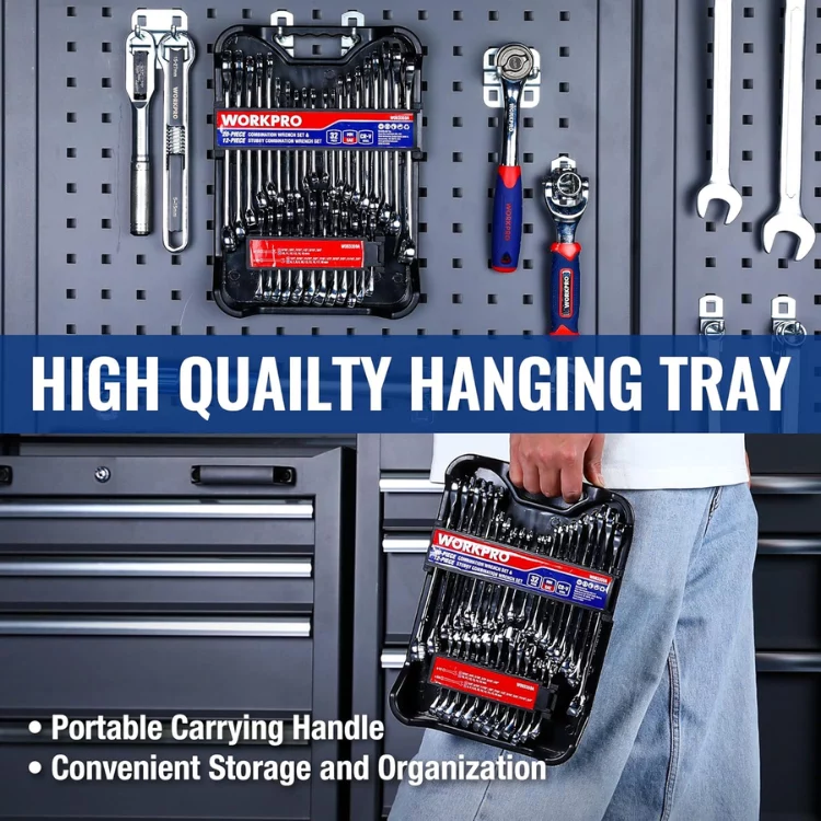 PORTABLE ORGANIZATION: The combo wrenches set comes with a premium organization tray for easy carry and hanging; Minimal packaging helps wrenches stay organized and allows quick access without the bulk, and can fit into most tool drawers