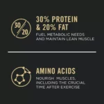 High-performance nutrition with 30% protein and 20% fat for endurance and strength.
