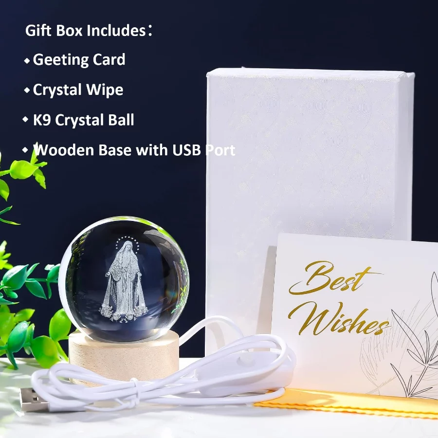 High-quality Material – Made of high quality k9 crystal, Jesus crystal ball is highly clear and durable. The interior sacred heart of Jesus statues images are carved by advanced 3D laser engraving technology, lifelike, clear, and stunning. Jesus Crystal Ball consists of a ball and wooden base, it measures 2.4*2.4*3.1 inches.