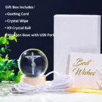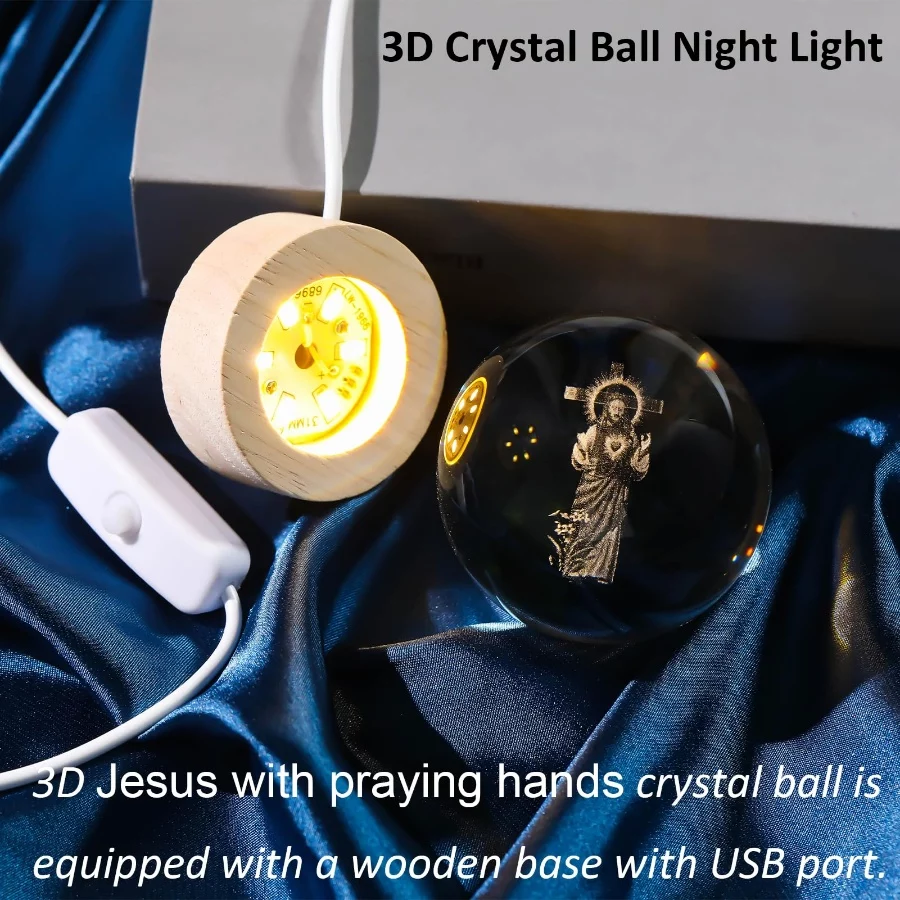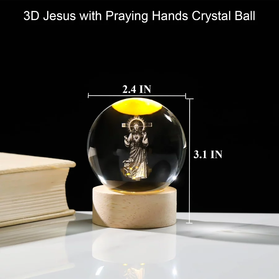 High-quality Material – Made of high quality k9 crystal, Jesus crystal ball is highly clear and durable. The interior sacred heart of Jesus statues images are carved by advanced 3D laser engraving technology, lifelike, clear, and stunning. Jesus Crystal Ball consists of a ball and wooden base, it measures 2.4*2.4*3.1 inches.
