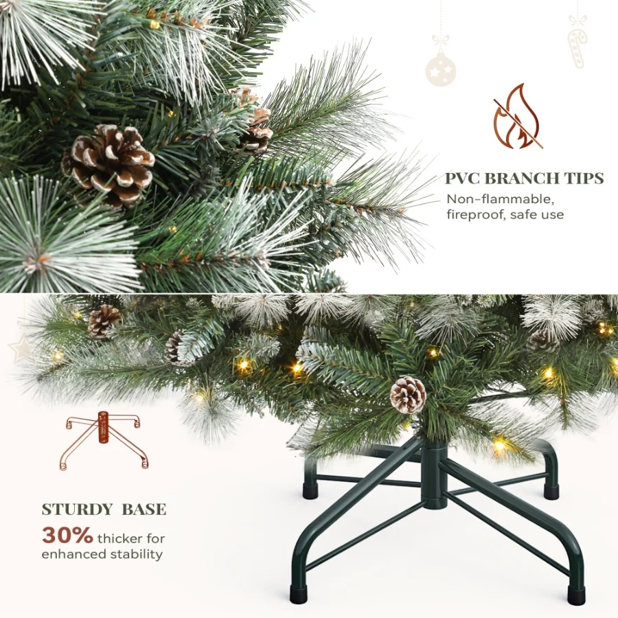 4.5 ft tall with 396 PVC tips, pinecones, and lush green needles, this pre-lit, pre-decorated tree brings a natural winter forest look indoors.