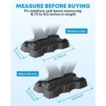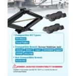 Compatibility: NOTE: Always double-check the size of RV stabilizer jack feet before ordering. The jack pad is compatible with scissor jack bases measuring 8.75-9.5 inches in length and 5.51 inches in width. Ideal for Travel Trailer Camper 5th Wheels.