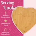 4-Piece Cheese Board Set – Reversible Heart-Shaped Bamboo Cutting Board, Pink Finish