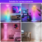 44” Smart RGB Floor Lamps for Bedroom, Modern LED Corner Lamp & Remote Control, 16 Million Colors & 68+ Scene, Music Sync