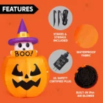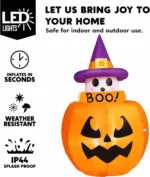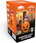 Whimsical Animated Design: Watch as the cute halloween decorations come to life! A friendly blow up ghost wearing a witch hat magically rises and falls inside a grinning pumpkin, creating a captivating ghost decor display that delights kids and adults alike.