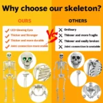 5.4FT Halloween Skeleton: Plastic skeleton comes with light and sound, and in the dark you can see red/green alternating glowing eyes and hear scary sounds!