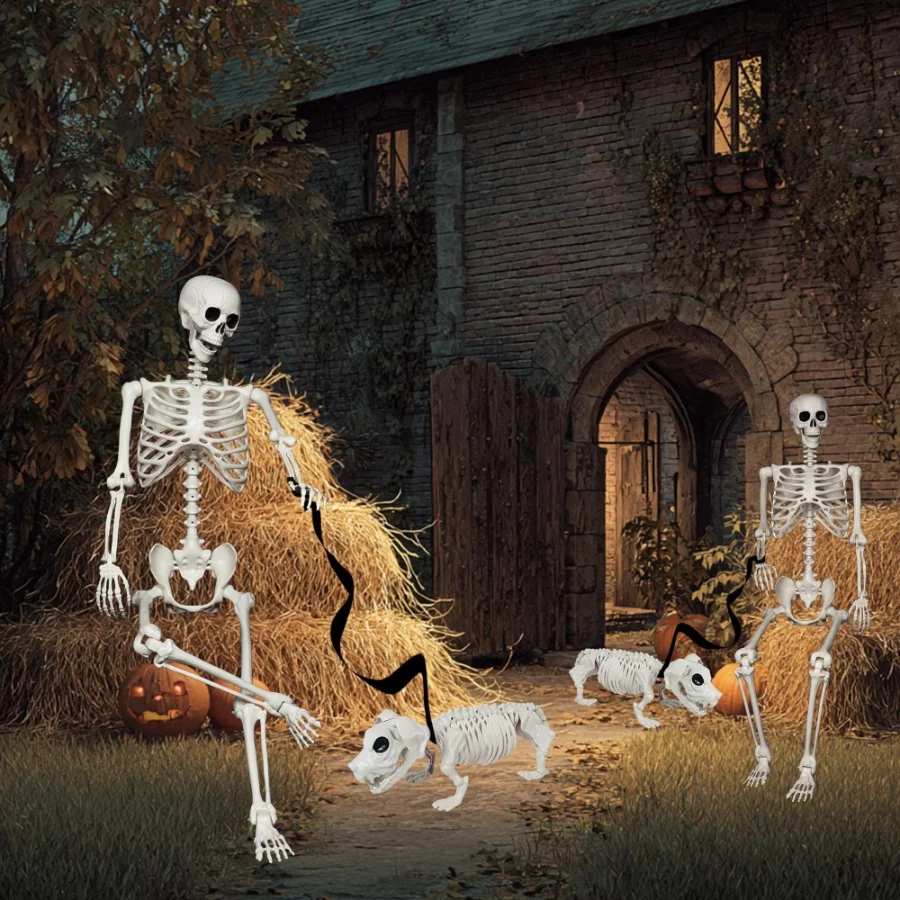 High-Quality Realistic Design: Crafted from high-quality plastic, the human and dog skeletons boast realistic appearances and intricate joint details. These durable decorations can be reused year after year, making them perfect for creating an authentic and haunting Halloween atmosphere.