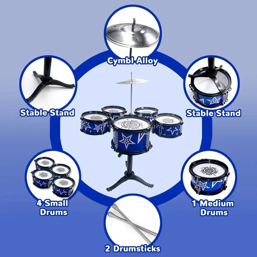 5 Piece Kids Jazz Drum Set For Toddlers, Musical Instrument Toy With Lights And Sounds, Ideal Boys Gift Ages 1-3 3-5.