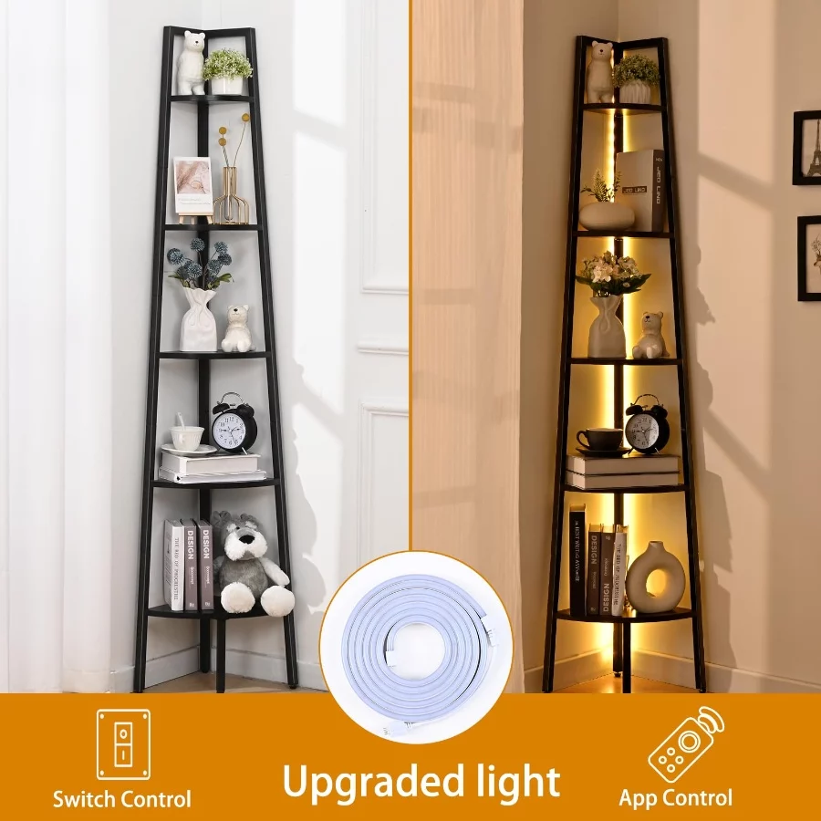 Gift for Corner Bookshelf with LED Light, 67.5in Tall Standing Shelf with Steel Frame, Storage Shelves !!