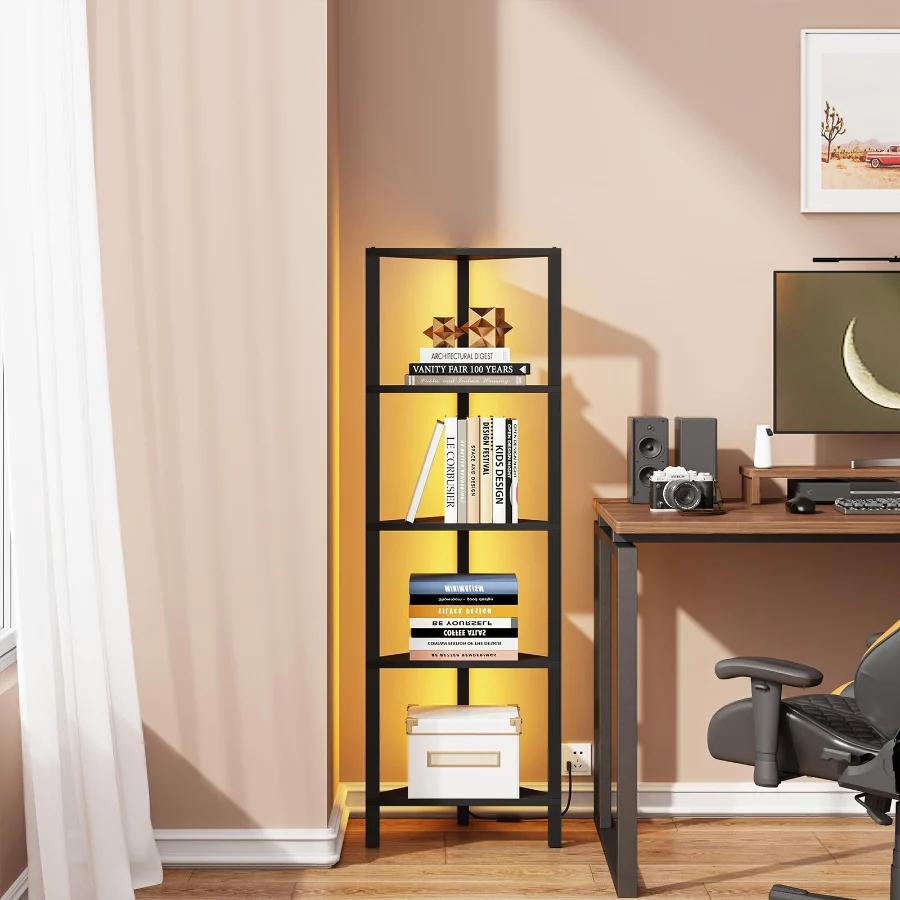 5-Tier Corner Bookshelf with LED Light, Space Saving Display Shelf Stand with Storage Rack for Bedroom Living Room Multi-Functional.