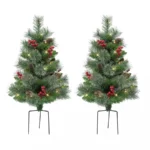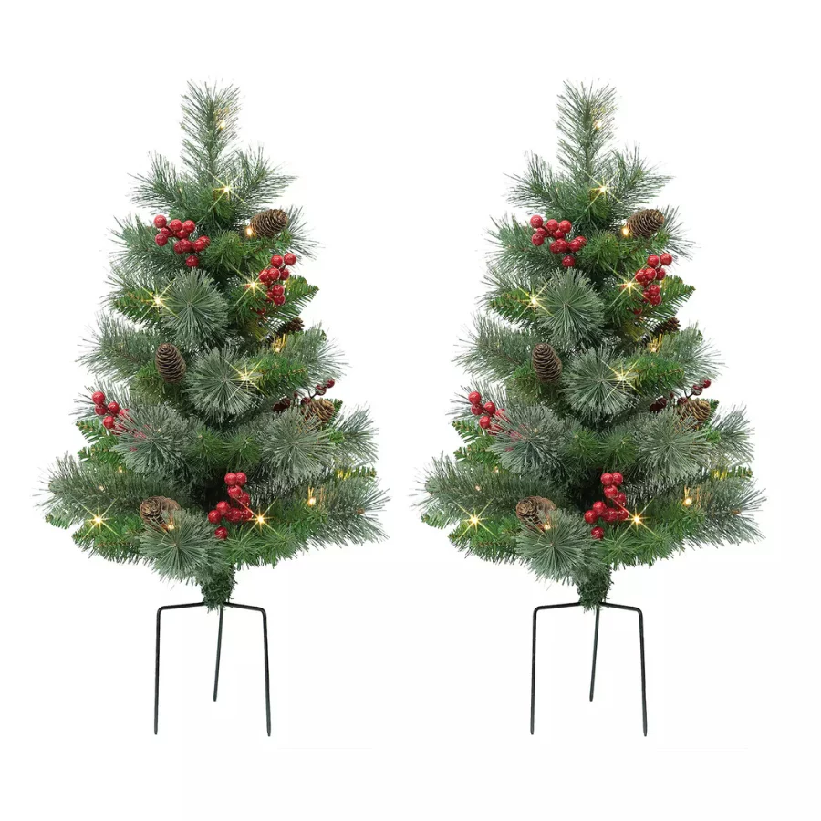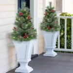 Puleo International 30 Pre-Lit Artificial Pine Branch Urn Filler Decor 2-pc. Set – Battery-Operated, LED Lights, Timer Function