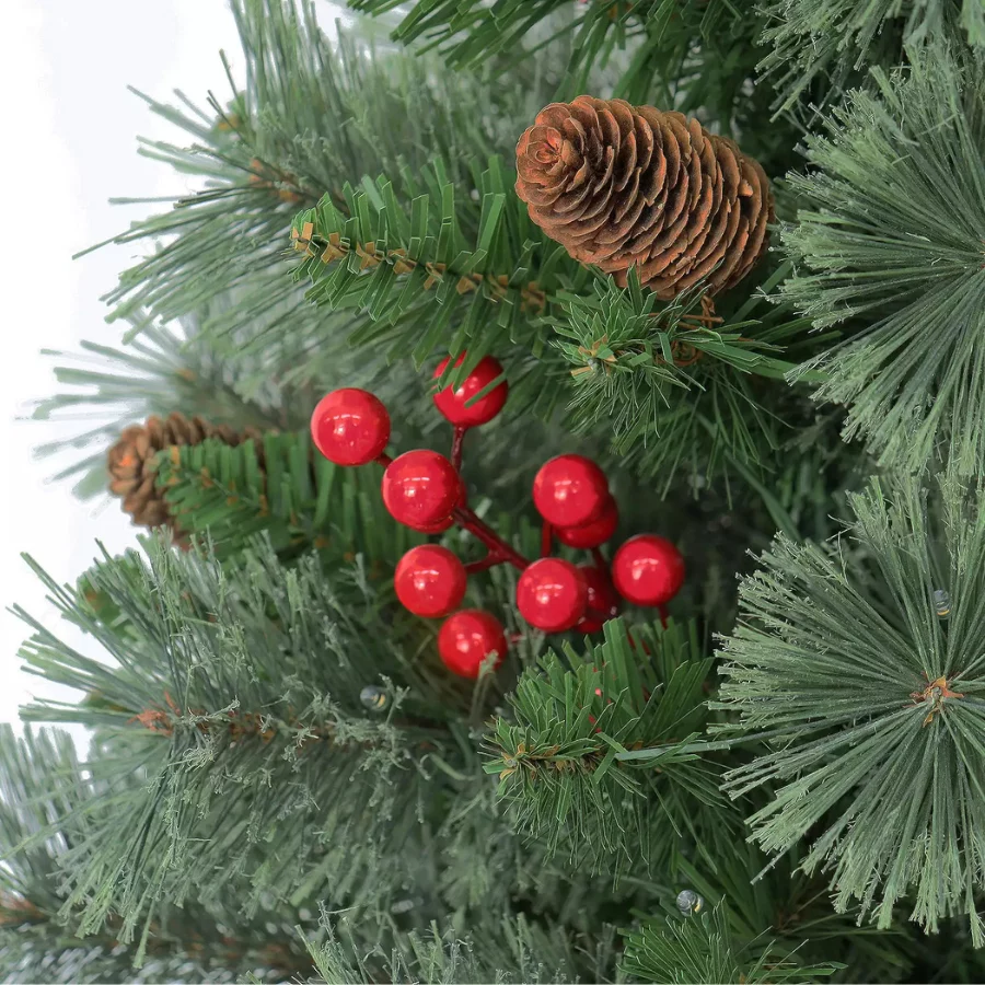 - Artificial pine cones and berries: Detailed with festive pine cones and berries for a natural look.