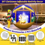 5FT Christmas Inflatable Nativity Scene Ball with LED Lights, Blow Up Birth of Jesus Outdoor Yard Lawn Garden Decoration Waterproof