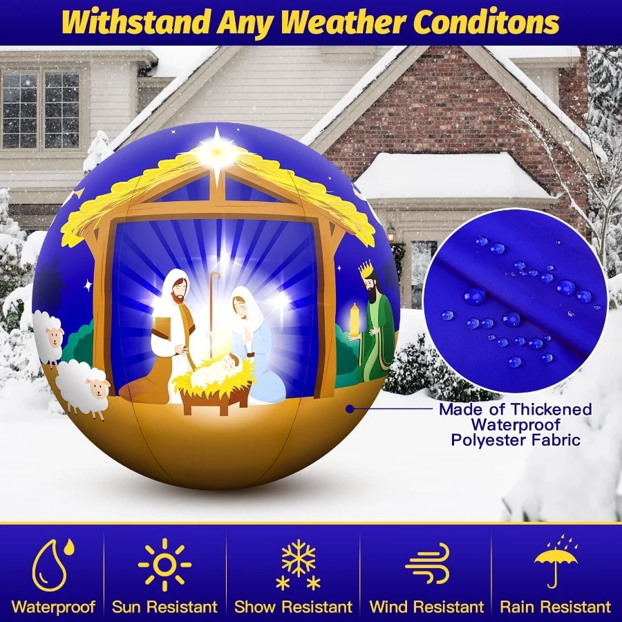5FT Christmas Inflatable Nativity Scene Ball with LED Lights, Blow Up Birth of Jesus Outdoor Yard Lawn Garden Decoration Waterproof