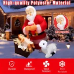 Outdoor Christmas inflatable Nativity Scene :This Christmas inflatable depicts the nativity scene: Santa Claus and sheep come to celebrate the birth of Jesus.Built-in 4 bright LED lights illuminate your yard and easily attract attention from guests, friends, and kids—making it a standout outdoor decoration.