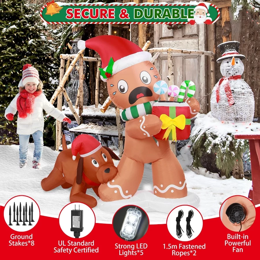 Gift for 5FT Outdoor Christmas Inflatable Gingerbread Man & Dog – LED Blow Up Funny Yard Decoration !!