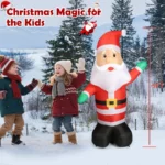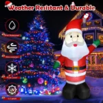 5FT Christmas Santa Inflatable – Light up your home with a heartwarming holiday greeting! This jolly Santa Claus sits with a cheerful smile, waving a friendly hello to all passersby. Perfect for porches, yards, or even indoors, its just-the-right-size creates a warm and inviting scene that instantly fills any space with Christmas magic.