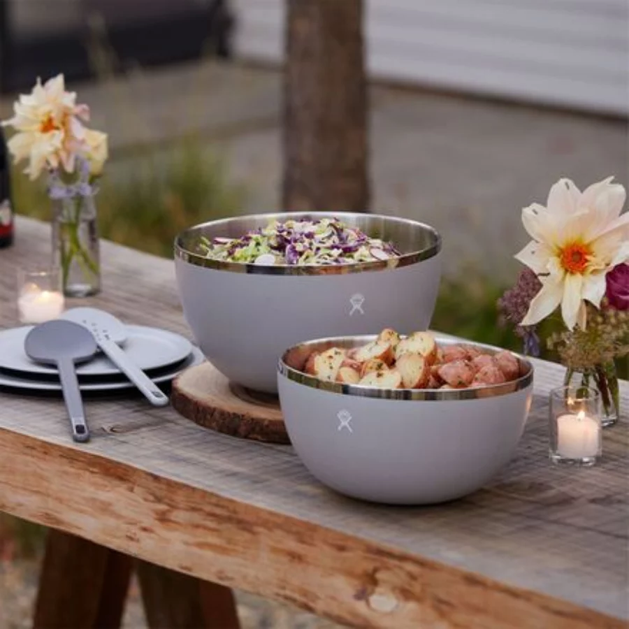 - No need to ask for a to-go container when we have the Hydro Flask 5qt Serving Bowl with Lid in our bag. It makes securely transporting our food easy thanks to a pressure lid top. Featuring TouchSteel insulation to keep our wings warm and icecream cool.