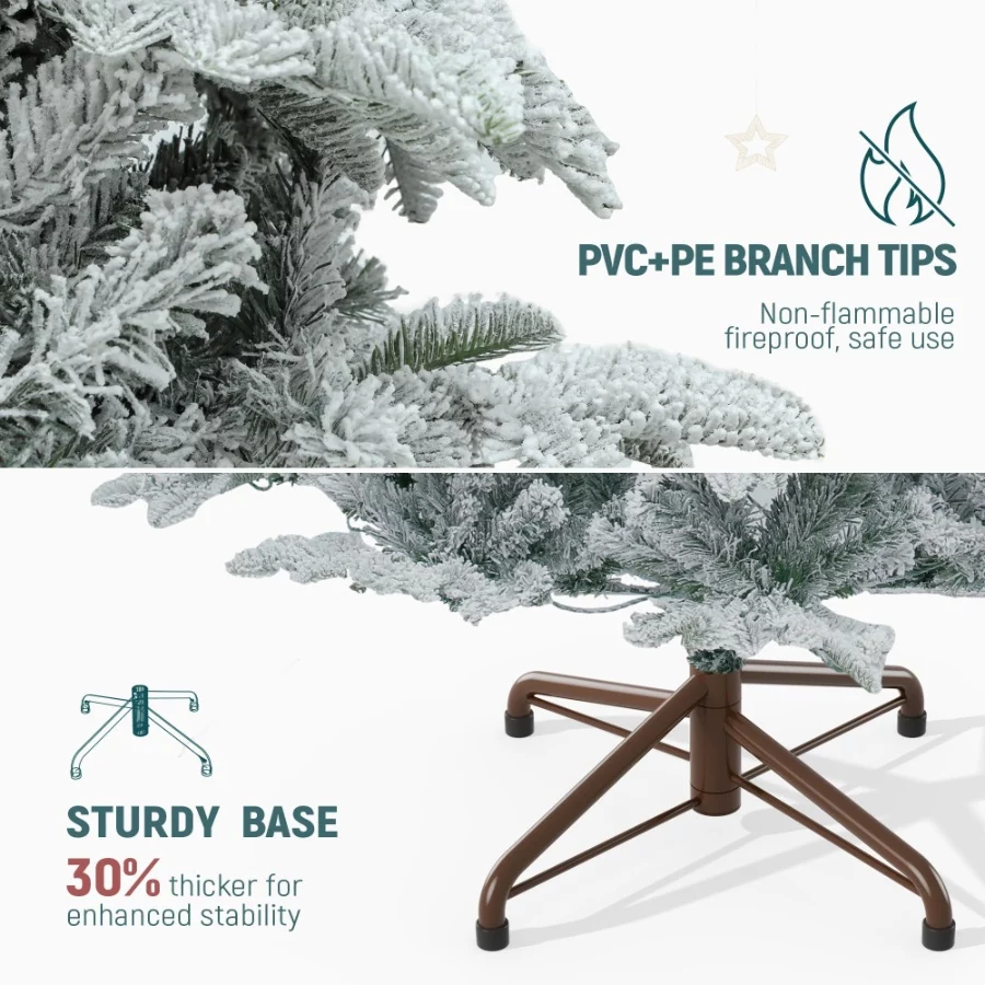 Transform your holiday decor with our pre-lit flocked artificial Christmas tree. Featuring 760 mixed PE and PVC branch tips for a lifelike appearance, this tree is adorned with 350 pre-strung lights offering 3 colors and 11 modes. Easy to assemble with hinged branches and a sturdy X-shaped iron stand, it ensures stability and durability. Ideal for any setting, it brings a magical, festive ambiance to your home or event.