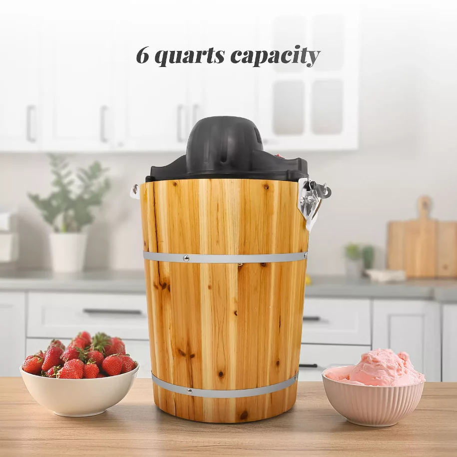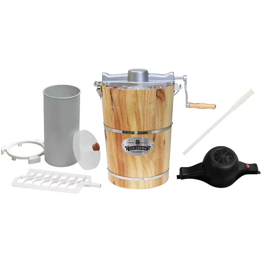 Elite Gourmet 6 Qt Electric Motorized Old-Fashioned Bucket Ice Cream Maker with Hand Crank