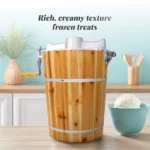 - Use: Mix ingredients, assemble ice cream maker parts, add ice and rock salt to the bucket, turn on the motor or use the hand crank