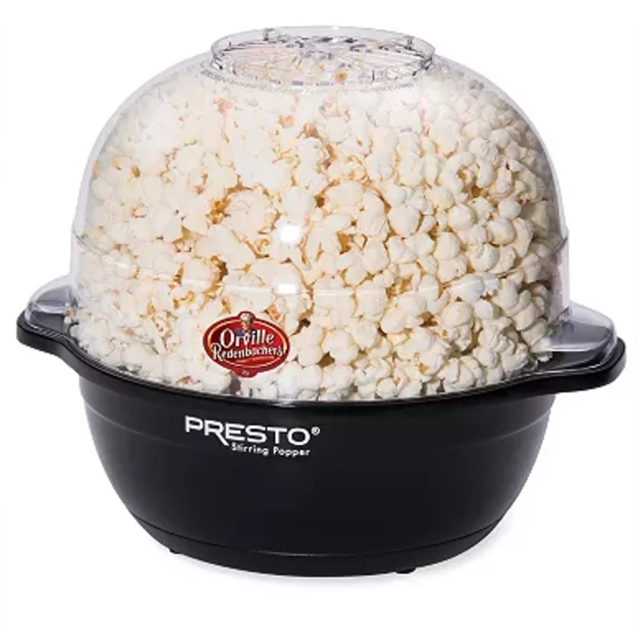 6-Quart Electric Popcorn Maker – Stirring System for Fluffy, Evenly Popped Corn – Vented Cover Doubles as a Serving Bowl – Fast and Easy Movie Night Prep