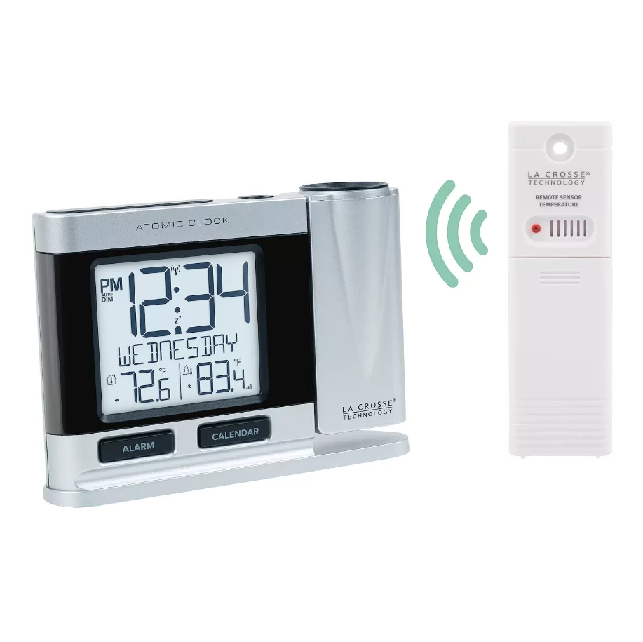 La Crosse Technology 616-12667-INT Silver Atomic Projection Clock with Temperature