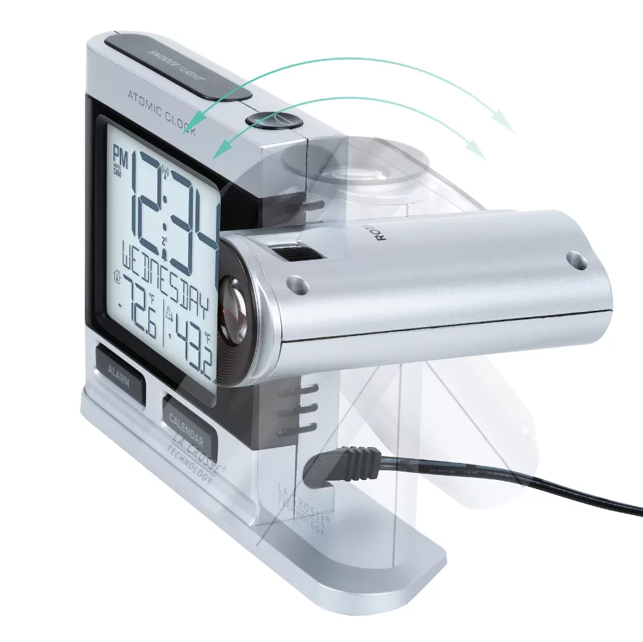View the time, date, temperature and more with this La Crosse Technology 616-12667-INT Silver Atomic Projection Clock with Temperature that does it all.