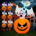 Premium & Durable Halloween Inflatable Outdoor Decoration: Our Halloween inflatable pumpkin ghost is crafted from heavy-duty 190T polyester fabric, designed to withstand the elements. The tear-resistant, waterproof material ensures durability against wind, rain, and sharp objects, so your inflatable Halloween decorations stay vibrant for years. The fade-resistant colors keep your Halloween blow up yard decorations looking spookily spectacular season after season