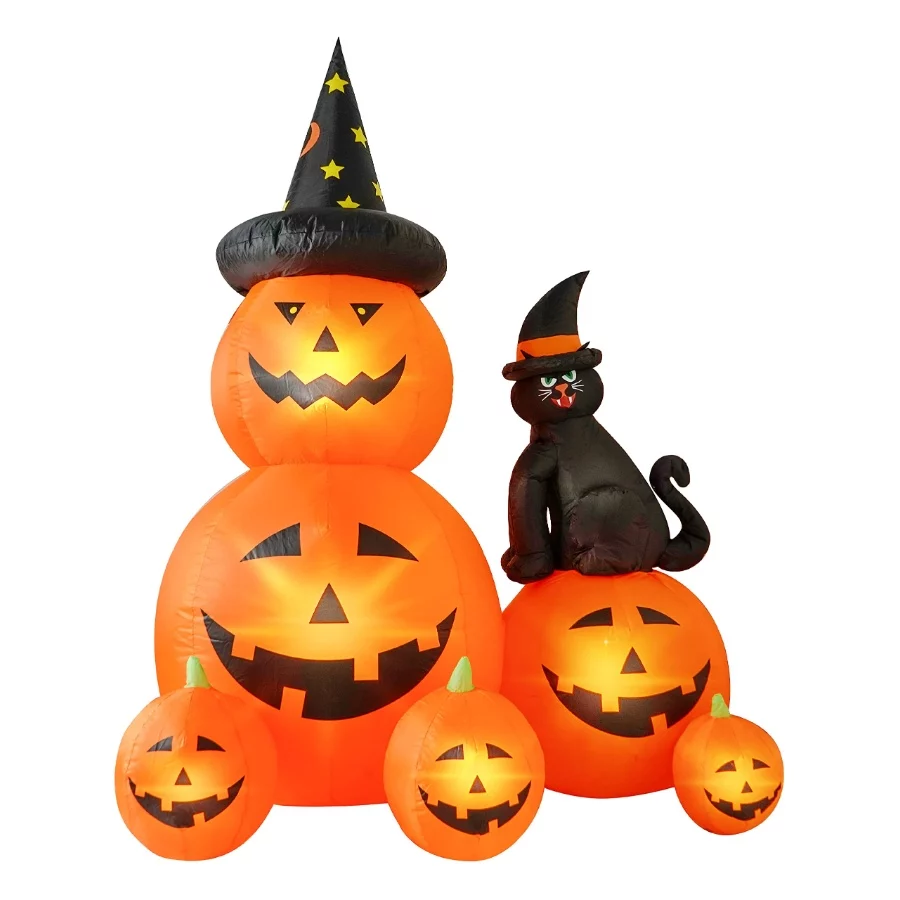 Gift for Halloween Inflatable Spooky Ghost, Pumpkin & Witch’s Cat with Built-in LED Lights !!