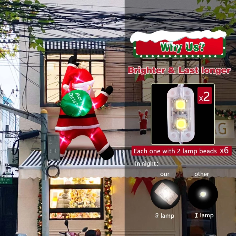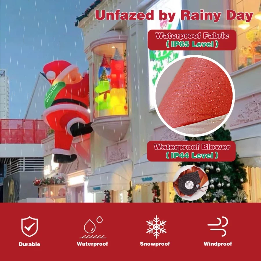 Hassle-free Setup: This Christmas inflatable decoration includes 7 ropes for ensure stability. Its quiet, waterproof blower inflates the Santa Claus in minutes automatically when connected to power. The extended power cord allows for flexible positioning around your home, offering a user-friendly experience.