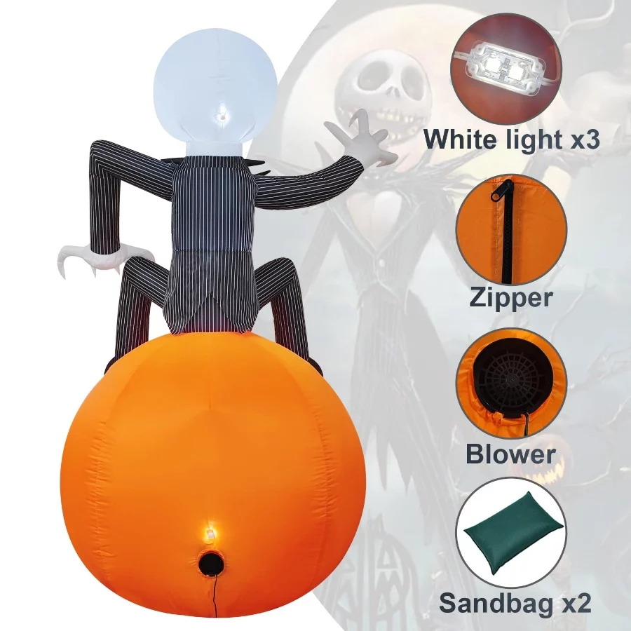 Decorate your Halloween: If you are a Halloween fanatic and are looking for exquisite Halloween yard decorations, then you must not miss our light-up skeleton sitting pumpkin inflatable decorations, each Halloween outdoor yard decorations can emit dazzling light, Halloween inflatable decorations configured with lights will surely bring you a better night viewing experience!