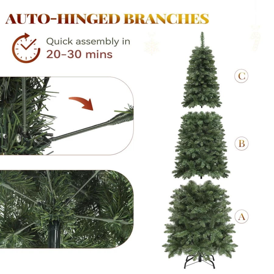 With 1000 branch tips, this tree creates a dense, natural silhouette ready to be adorned with your choice of wreaths, bells, and stockings. Suitable for homes, weddings, Christmas celebrations, and commercial spaces, it brings festive charm to any location.
