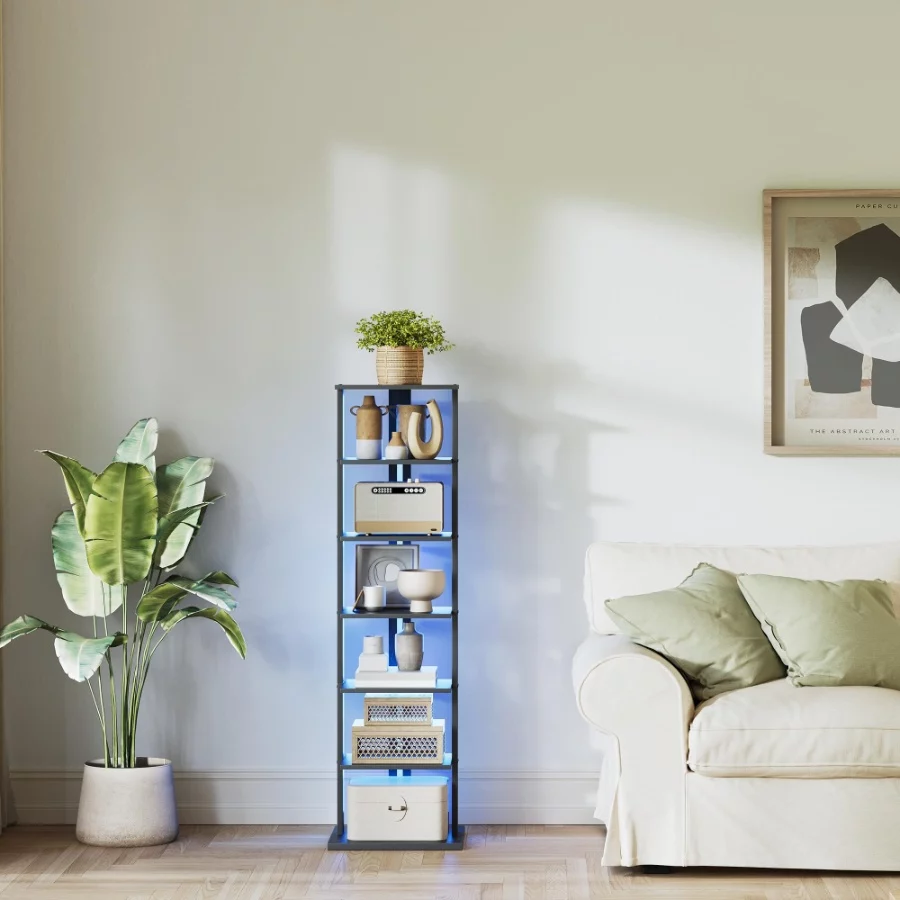 Bookshelf with LED Lights: The bookshelf features a LED light strip with more than 20 colors and 22 dynamic modes. You can easily adjust the lights with the manual key or phone app. The LED bookcase is a fantastic addition to your home decor.