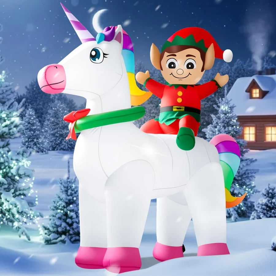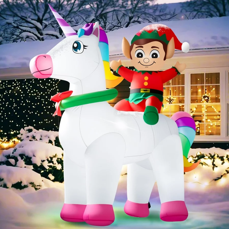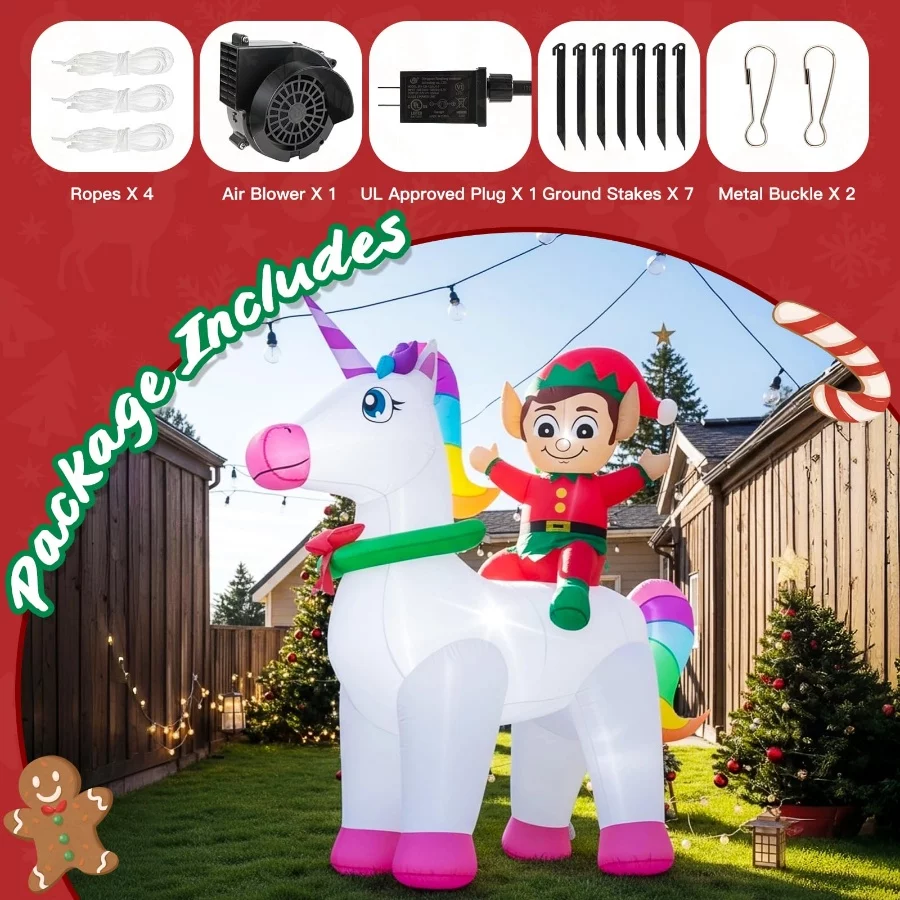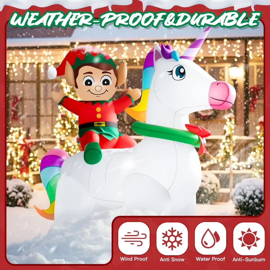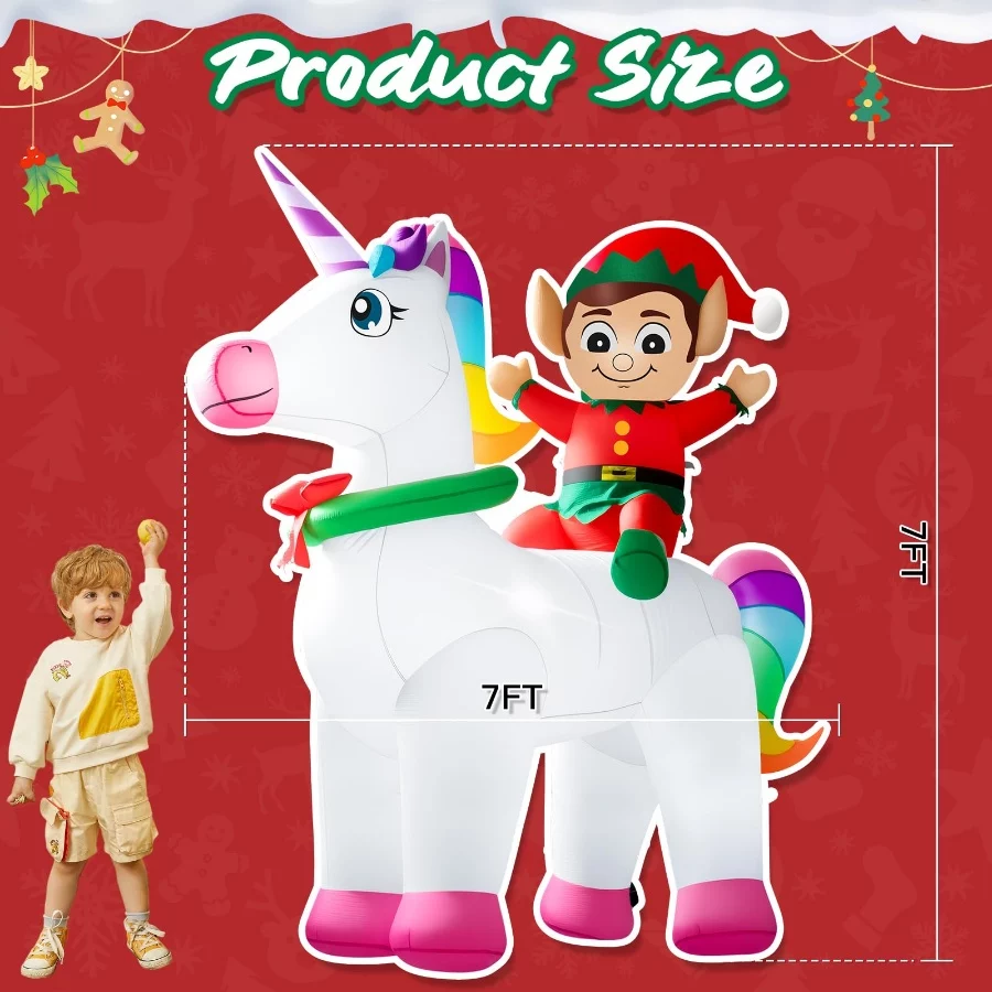 7FT Blow Up Christmas Unicorns & Elves Inflatable with LED Lights, Outdoor Lawn Garden Home Party Holiday Decoration Waterproof