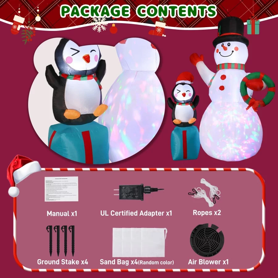 Fast Inflation and Easy Set Up: Our Chritsmas inflables equipped with a powerful-duty blower can continuous airflow inflate the yard decoration. Be sure the zipper is closed to let it fully inflate please. Finally, to secure the christmas outdoor inflatables, firmly tether ropes and fixed all stakes.