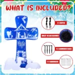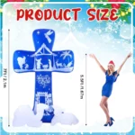 Carefully Designed: this Christmas jesus inflatable features a cross shaped design adorned with Santa Claus and reindeer, blending traditional Christmas elements with the theme of Jesus; Perfect for outdoor decoration, the bottom of the cross has a large round base to ensure stability, making it a standout piece in any holiday display