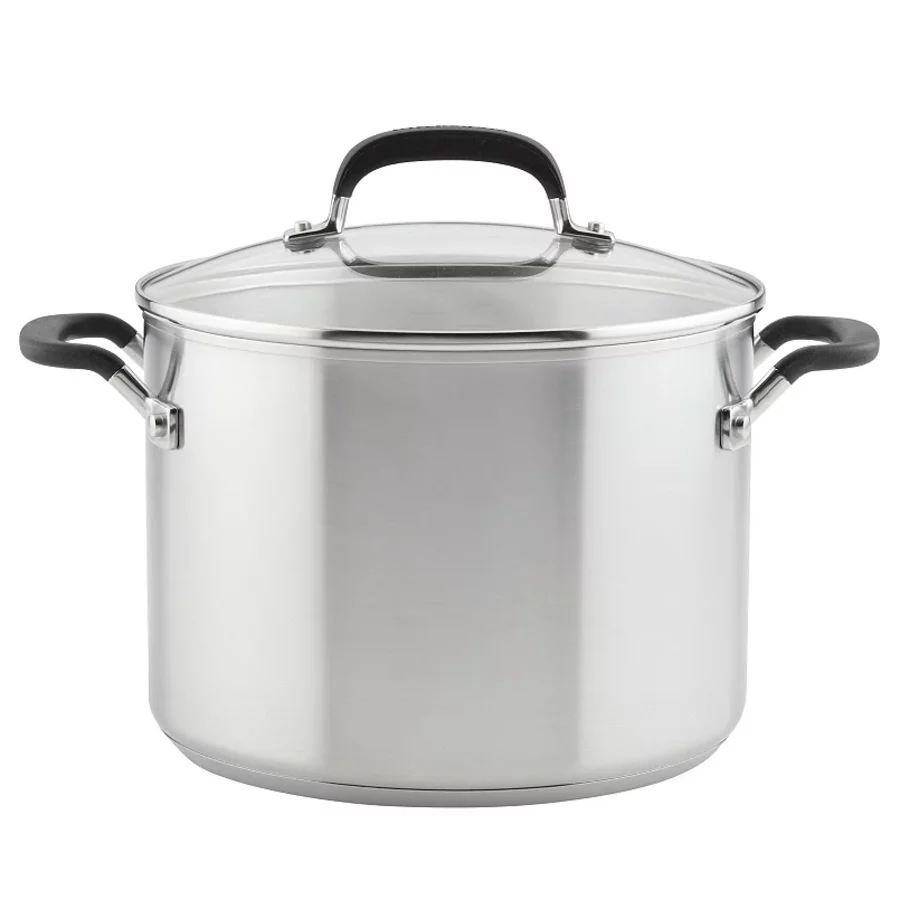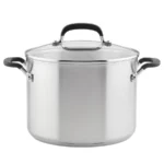 We needed to replace our 8 qt non-induction compatible pot with one that was compatible with our new induction stove. This is a well-made pot, very sturdy without being too heavy. The handles are comfortable to use and provide a solid grip. Easy to clean. Nice looking. We are very happy with this purchase.