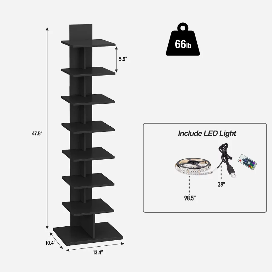 8-Tier Corner Bookshelf with LED Light, Space Saving Display Shelf Stand with Storage Rack for Bedroom Living Room Multi-Functional.