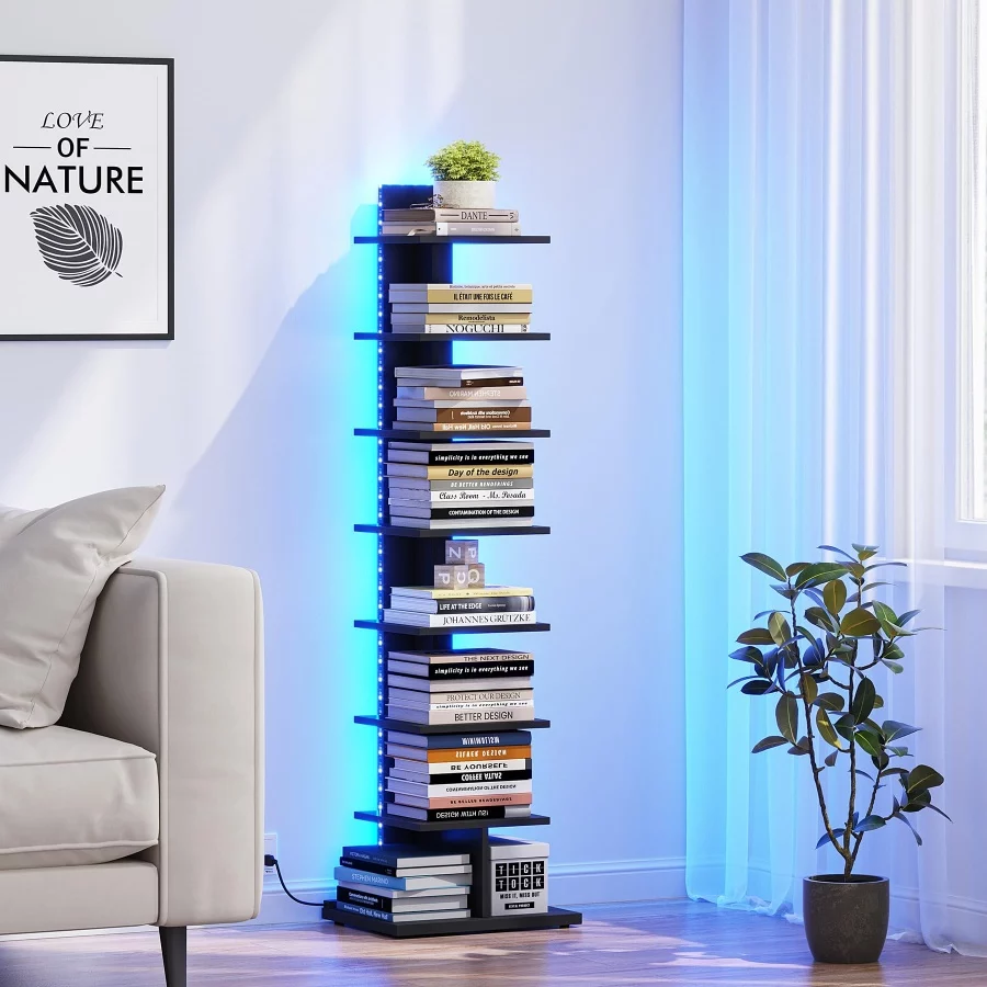 8-Tier Corner Bookshelf with LED Light, Space Saving Display Shelf Stand with Storage Rack for Bedroom Living Room Multi-Functional photo review